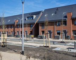 Alles is nog erg vers in dit deel van de straat. De tuinen zijn nog open. Rowena vindt het wel gezellig. ‘Als ik naar buiten loop, zie ik mijn buren aan het werk’, zegt ze. ‘We maken dan even een praatje. De tuinafscheidingen groeien wel dicht natuurlijk, maar het zorgt ervoor dat je elkaar al wel kent. Het geeft echt een dorps gevoel.’
