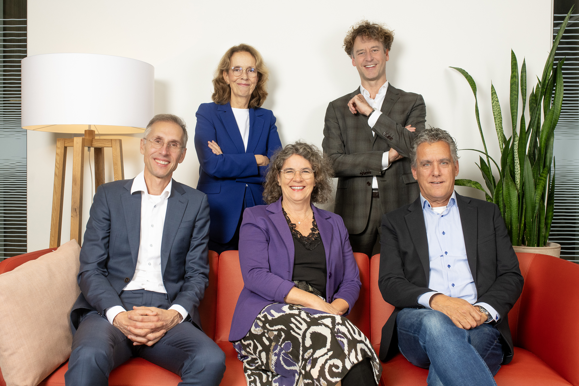 Op de foto van links naar rechts: John Verhoeven, Jacqueline van Ginneken, Karin Doms, Jeroen Frissen en Aart Jooren.