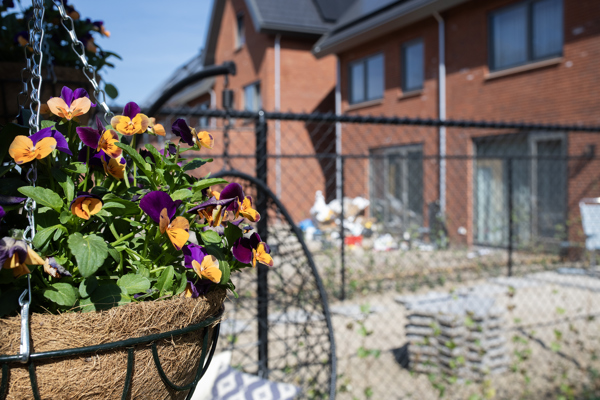 Alles is nog erg vers in dit deel van de straat. De tuinen zijn nog open. Rowena vindt het wel gezellig. ‘Als ik naar buiten loop, zie ik mijn buren aan het werk’, zegt ze. ‘We maken dan even een praatje. De tuinafscheidingen groeien wel dicht natuurlijk, maar het zorgt ervoor dat je elkaar al wel kent. Het geeft echt een dorps gevoel.’